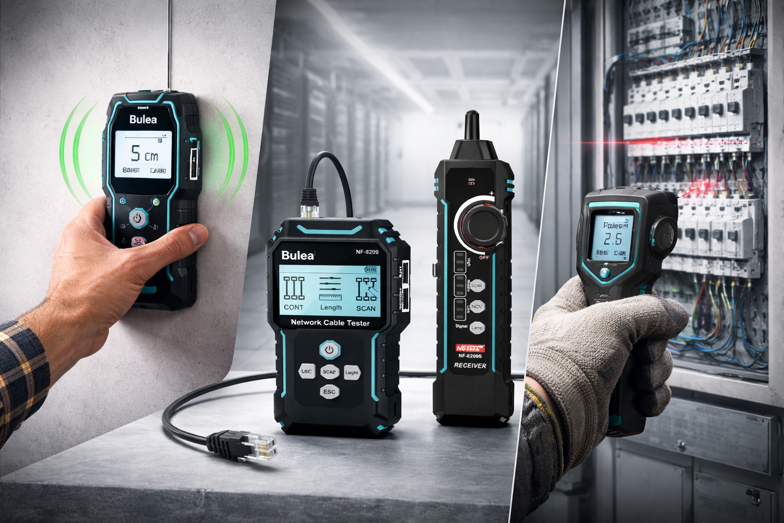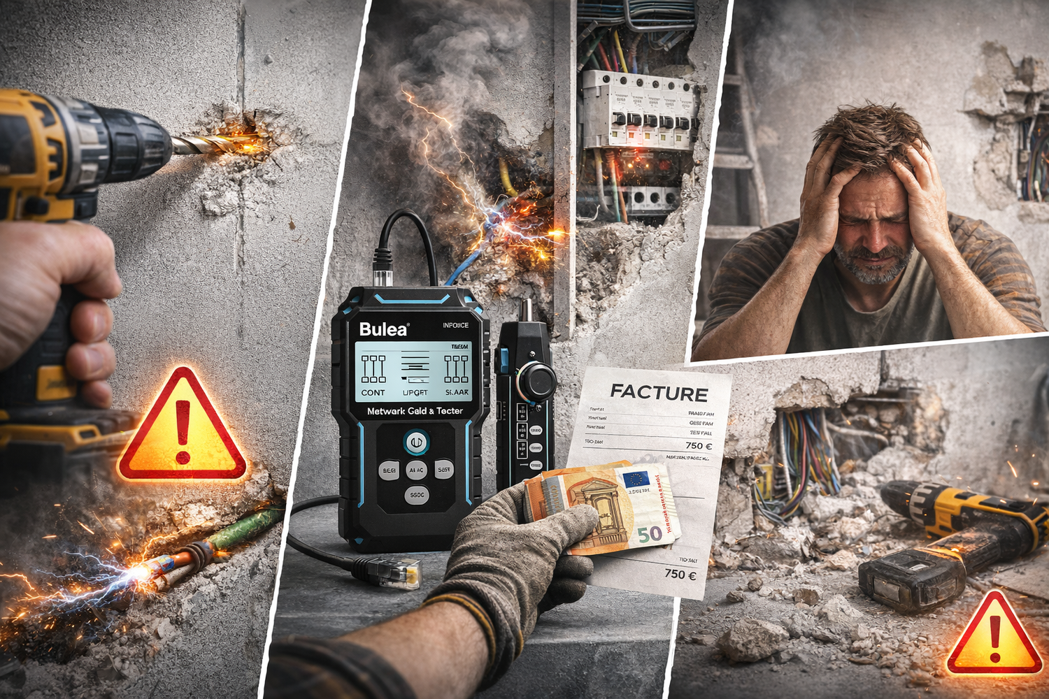 Balayez lentement la zone : l’écran et les alertes vous indiquent une présence (câbles sous tension / métal selon le modèle).