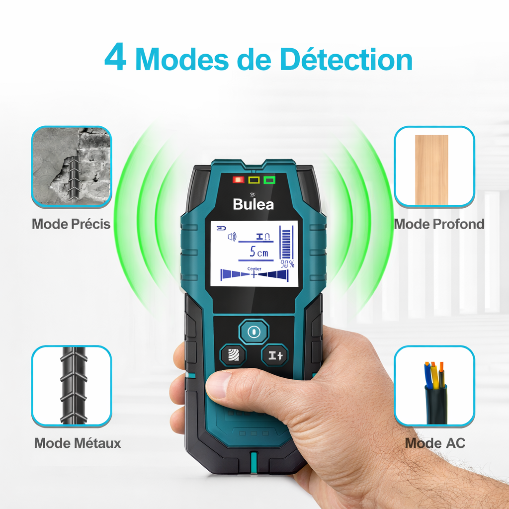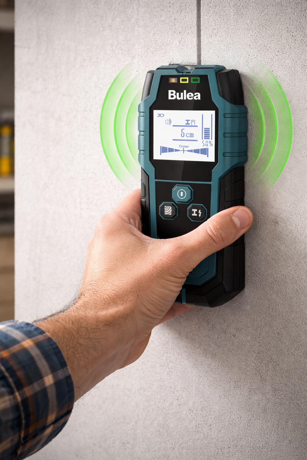 Balayez lentement la zone : l’écran et les alertes vous indiquent une présence (câbles sous tension / métal selon le modèle).